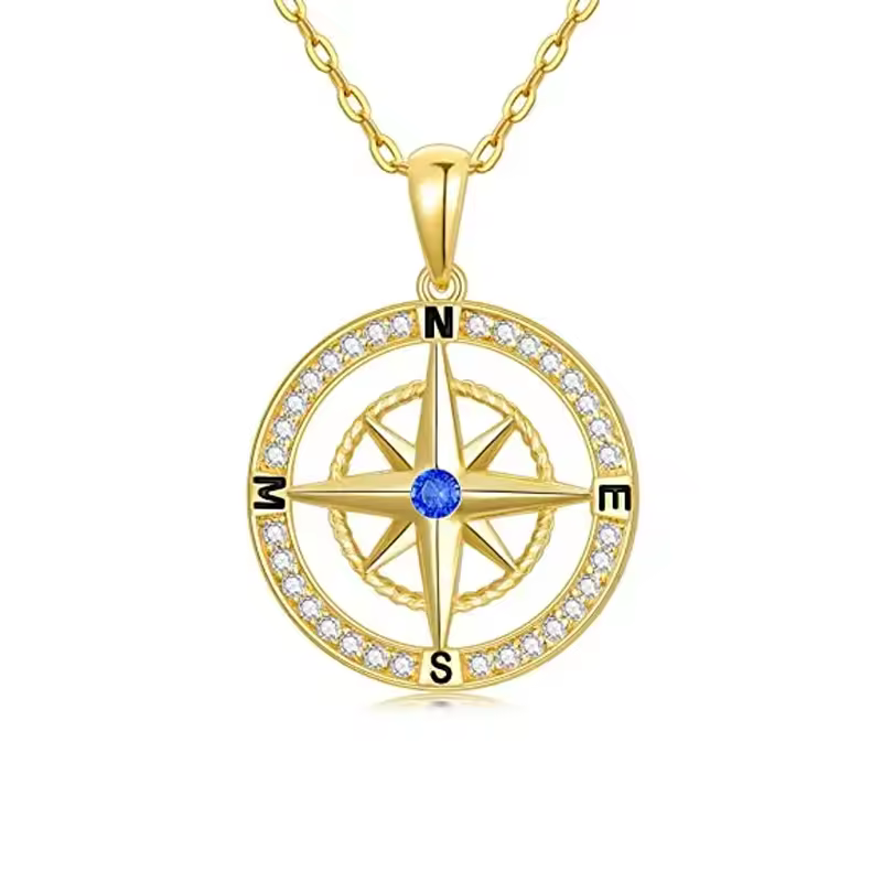 Découvrez l'attrait de notre collier pendentif boussole en or 10 carats, élégamment orné de zircones cubiques étincelantes pour la femme moderne.