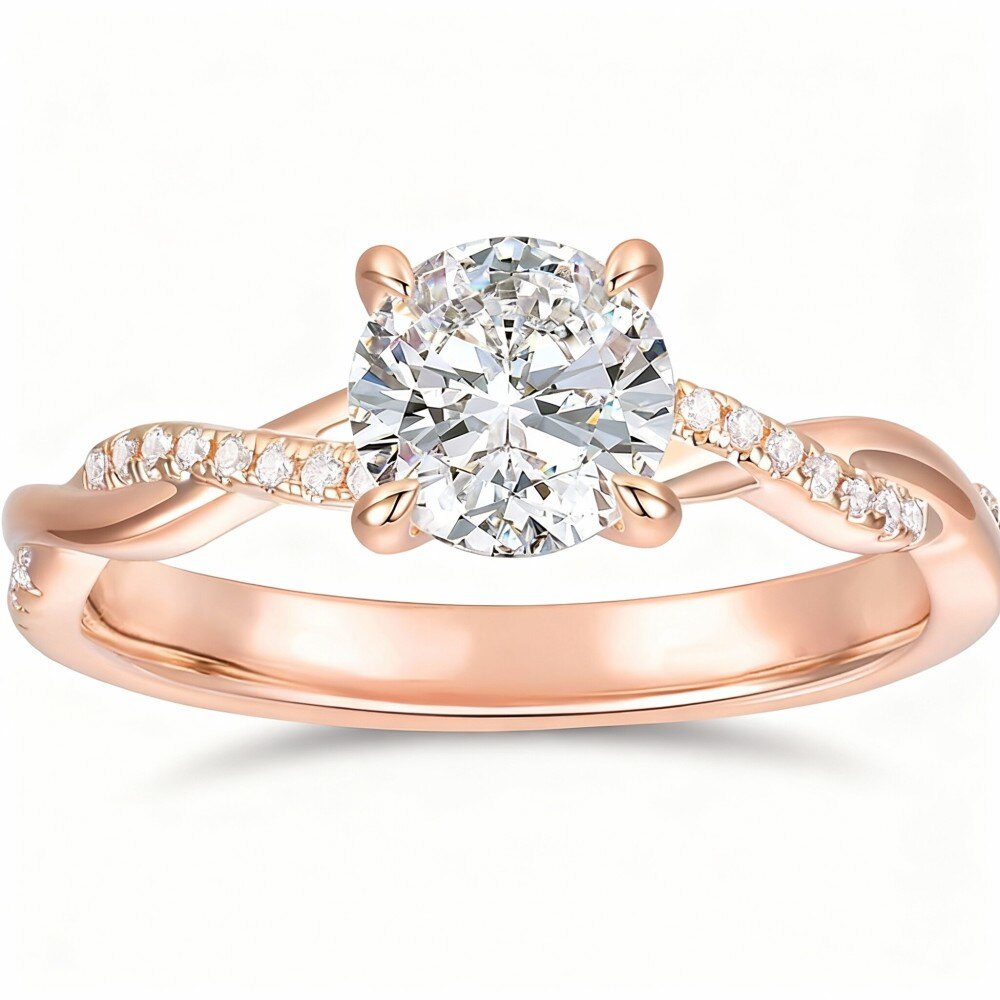 Découvrez l'élégance de notre Bague de Fiançailles en Or Rose 10K, avec une impressionnante pierre centrale en moissanite de 1.25CT, conçue pour la femme moderne.