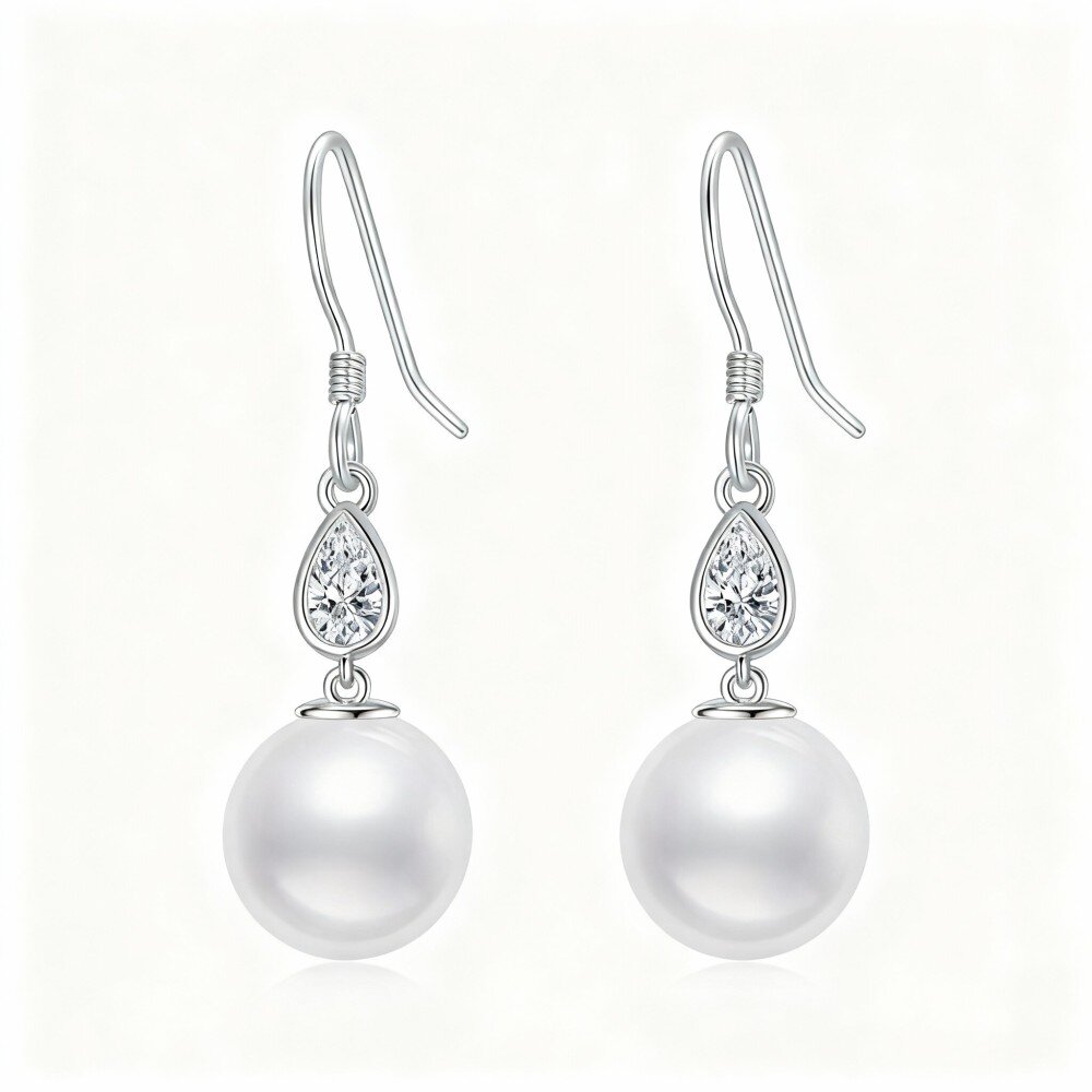 Découvrez l'élégance avec nos magnifiques boucles d'Or Blanceilles pendantes en Or Blanc 10K, Or Blancnées de zircon et de perles, parfaites pour rehausser votre style.