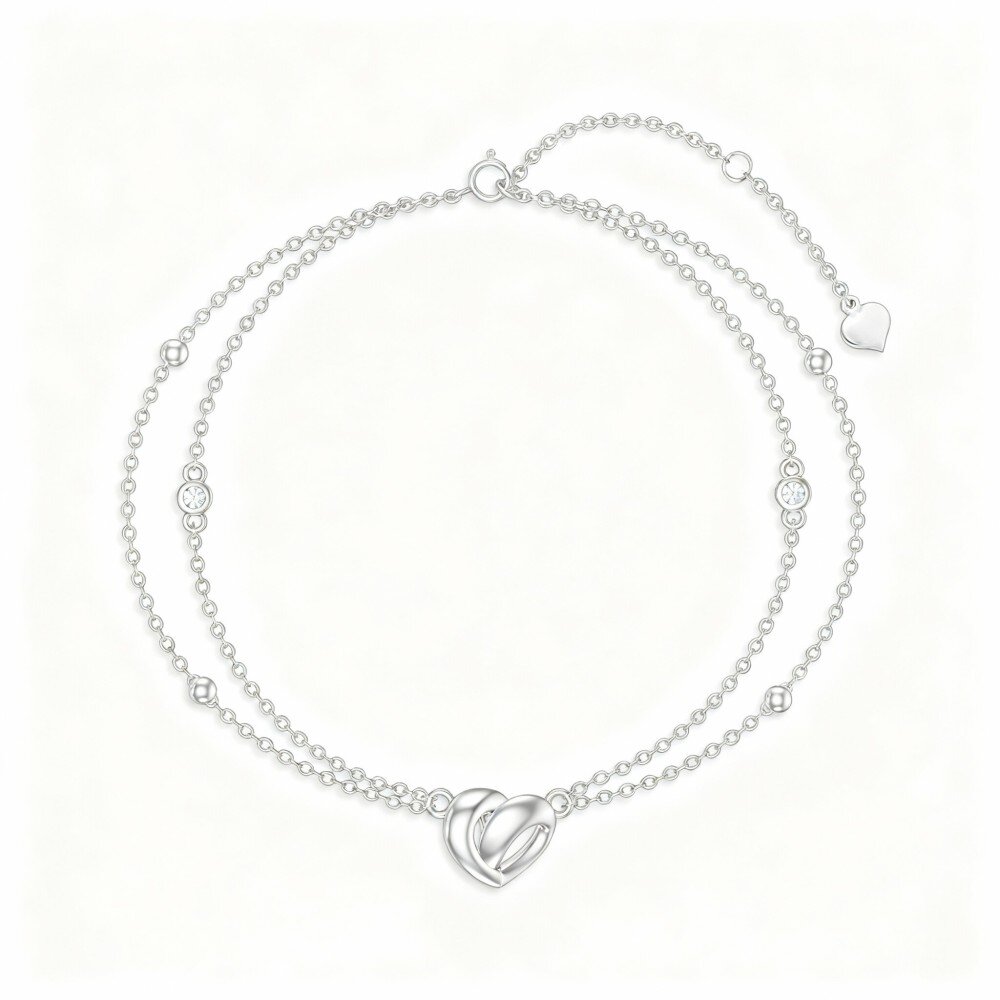 Élevez votre style avec notre magnifique bracelet superposé en Or Blanc 10K, présentant des designs en fOr Blancme de cœur et des zircons cubiques scintillants, parfait pour les femmes sophistiquées.
