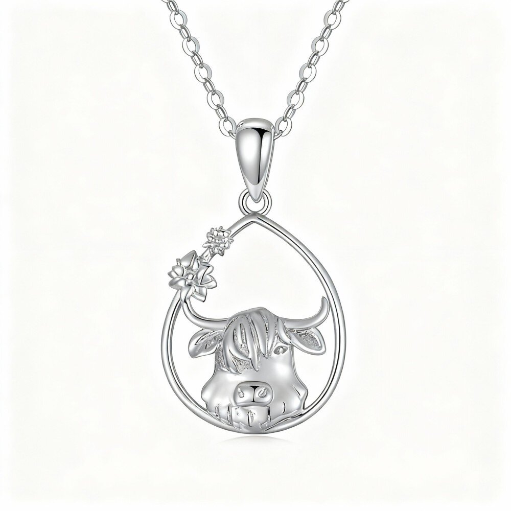 Découvrez notre magnifique collier pendentif en Or Blanc 10K, mettant en avant un superbe design de Highland Cow qui séduira les amateurs de bijoux uniques et raffinés.