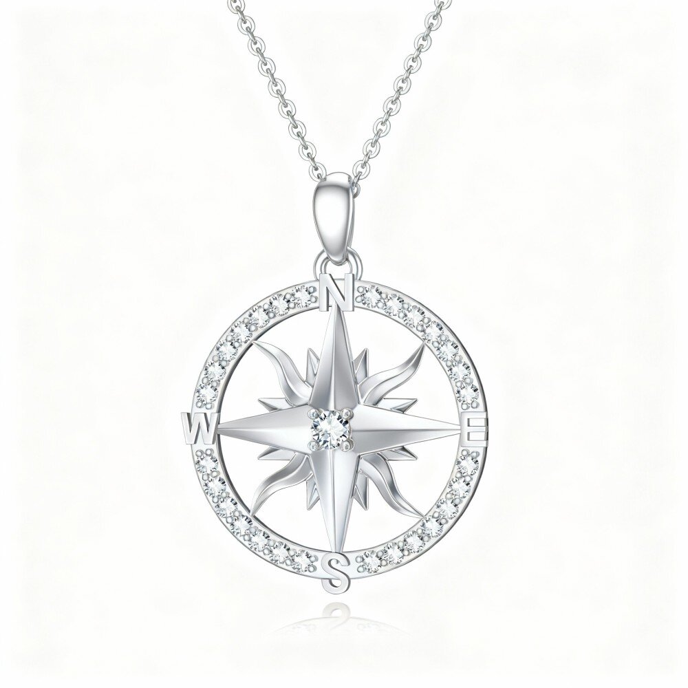 ExplOr Blancez la beauté et le symbolisme de notre collier en Or Blanc 10K avec pendentif boussole, conçu pour la femme moderne.