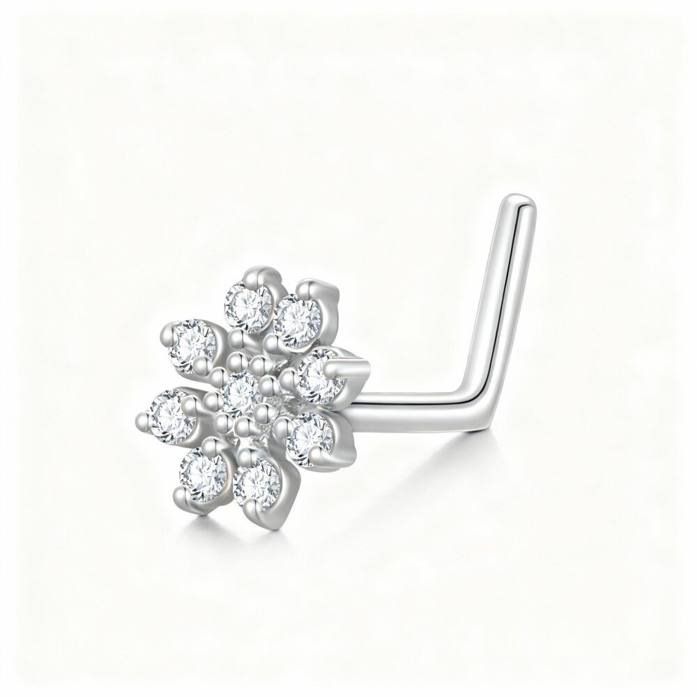 Notre anneau de nez en Or Blanc 10K, Or Blancné de motifs flOr Blancaux en moissanite étincelante, illustre parfaitement l'élégance et l'individualité de la femme moderne.