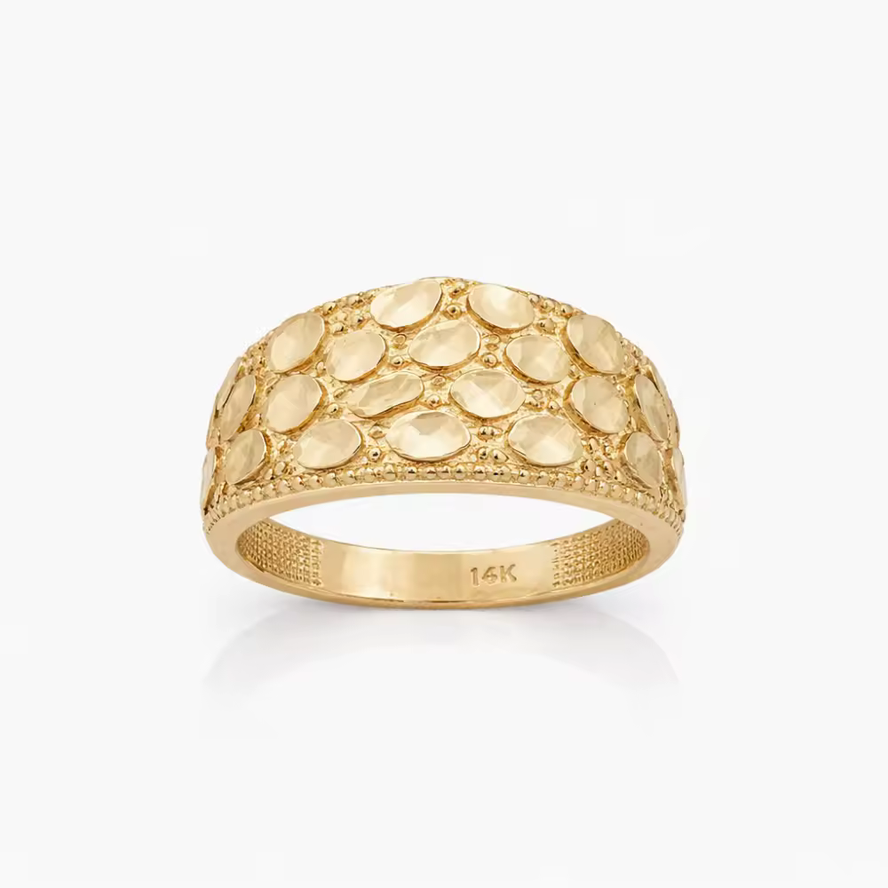 Fabriqué en or 14 carats de haute qualité, cette bague pour homme arbore un style vintage qui évoque la nostalgie tout en