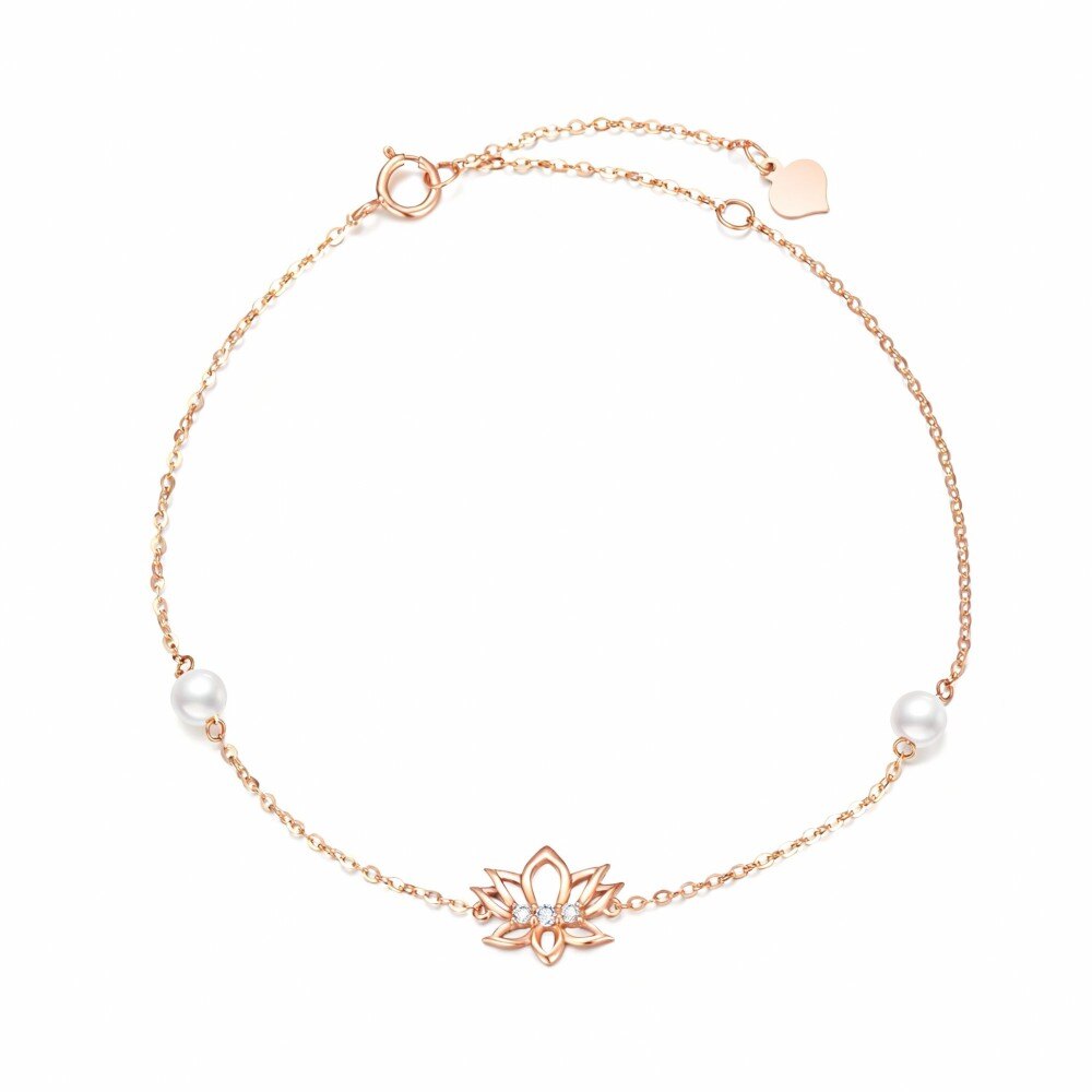 Découvrez l'élégance de notre bracelet pendentif en Or Rose 14 carats, doté d'une superbe perle et d'un motif de lotus complexe, parfait pour les femmes qui apprécient la beauté intempOr Roseelle et la qualité durable.