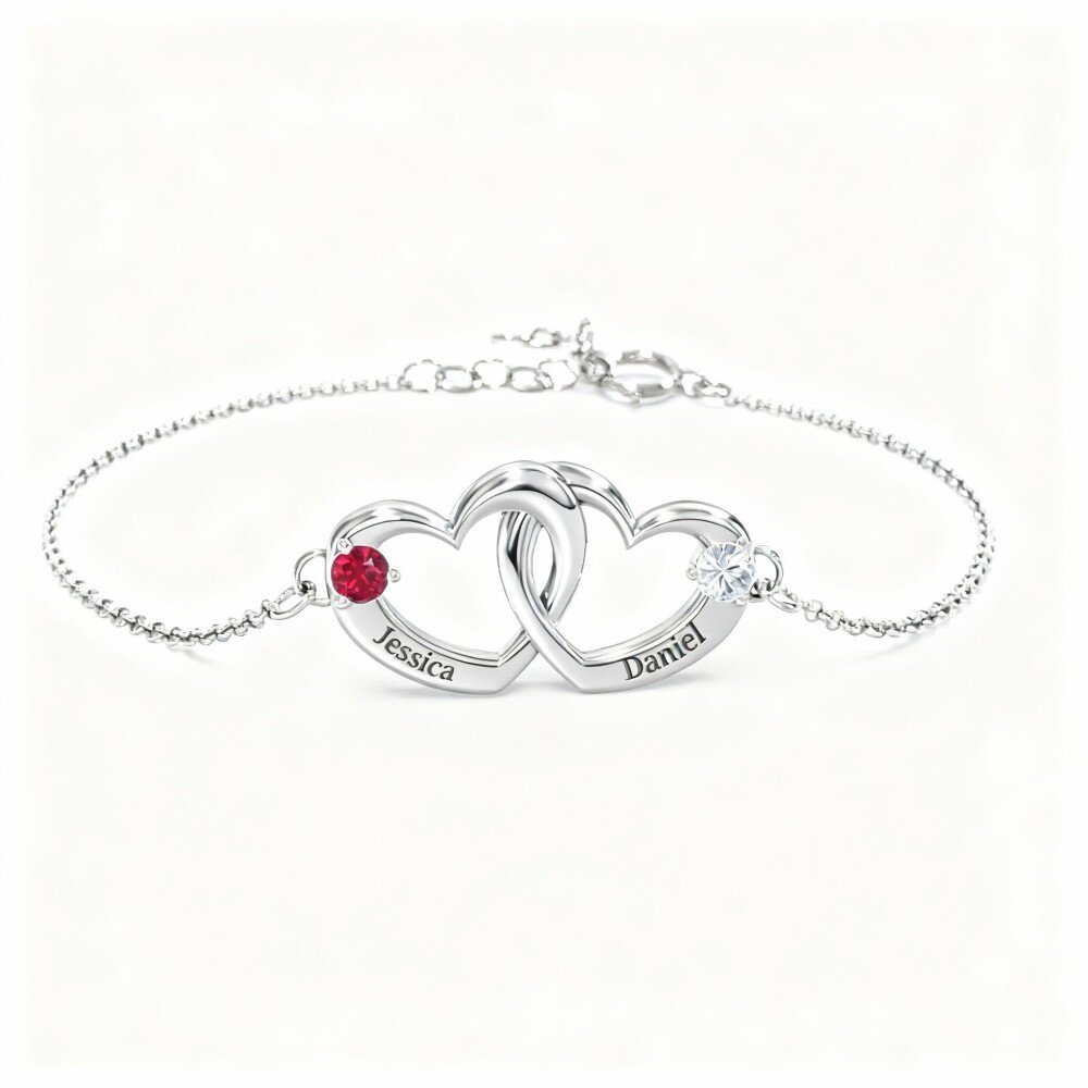 Sublimez votre collection d'accessoires avec notre luxueux bracelet à breloques en 14K Gold, conçu pour les femmes qui apprécient l'élégance et la personnalisation. Or Blancné d'oxydes de zirconium et d'un magnifique motif cœur sur cœur, ce bracelet peut être personnalisé avec un prénom classique et une pierre de naissance, ce qui en fait le cadeau idéal pour vous-même ou un être cher.