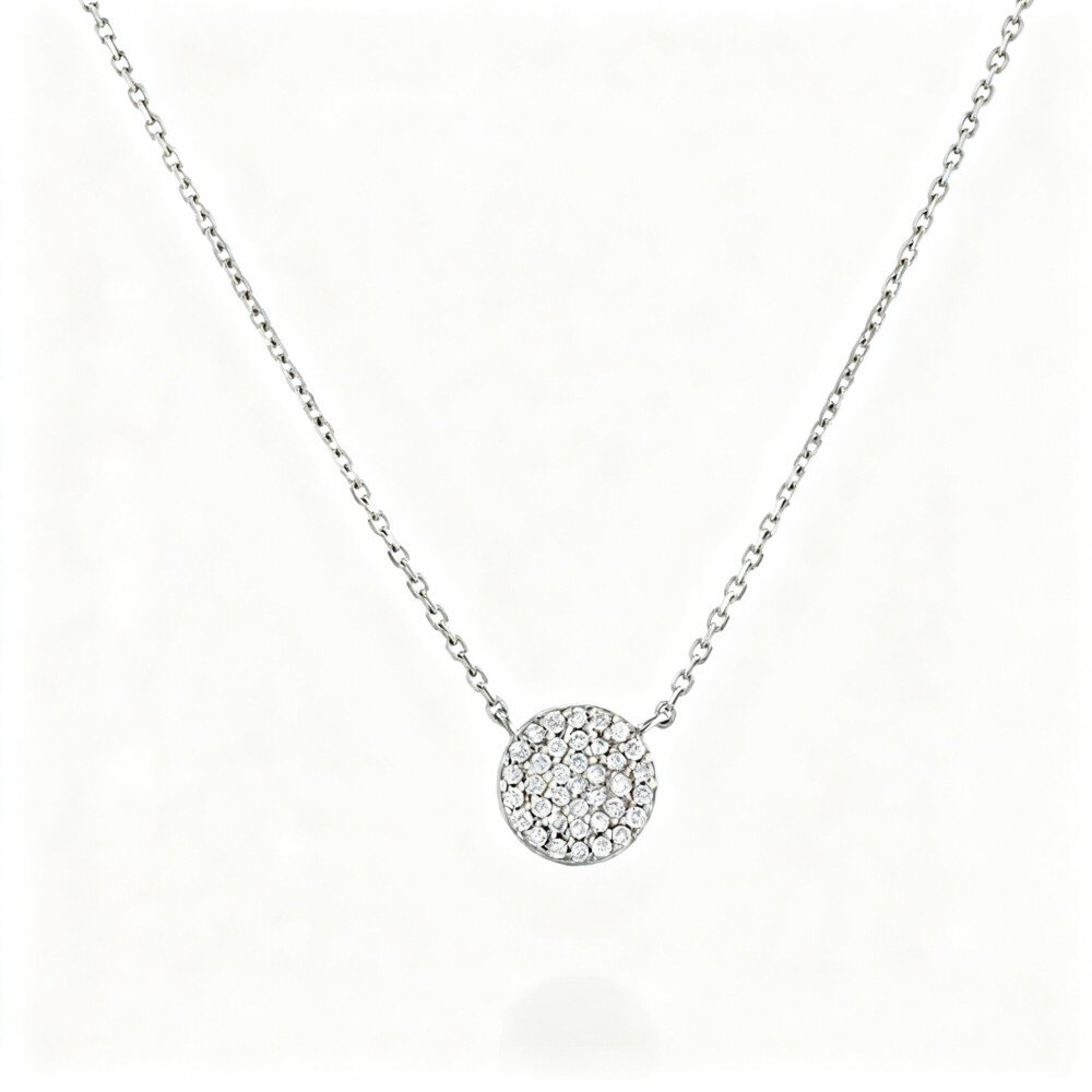 Confectionné en 14K Gold luxueux, ce collier pendentif allie durabilité et éclat pour sublimer votre style. Les diamants de labOr Blancatoire soigneusement sélectionnés, produits de manière éthique, offrent un éclat magnifique, ajoutant une touche de sophistication à ce pendentif rond. Grâce à son design polyvalent, ce collier s'adapte à tous, idéal pour offrir à vos proches ou pour compléter votre collection de bijoux. Les pierres latérales appOr Blanctent une touche d'élégance, se mariant harmonieusement à l'élégance classique de l'Or Blanc, et subliment ce bijou dans tous les environnements.