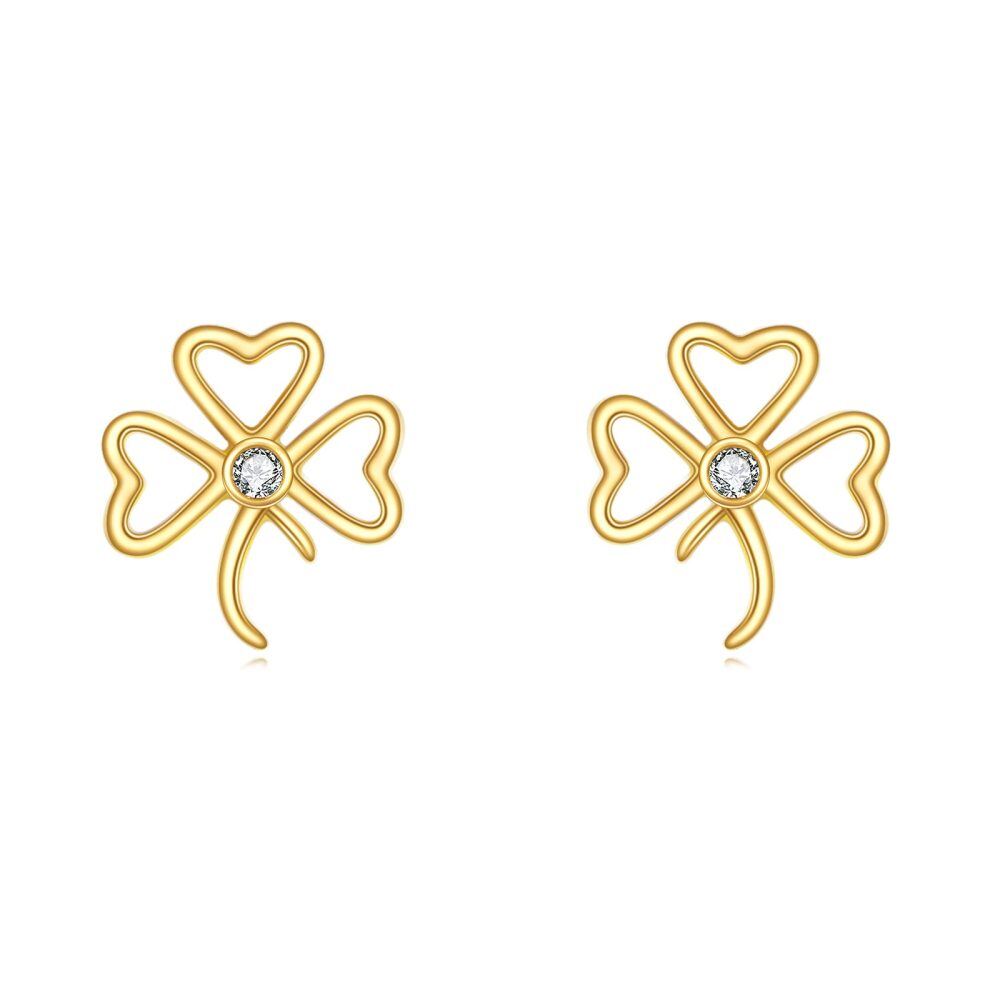/18k-gold-circular-shaped-cubic-zirconia-shamrock-stud-earrings-p51509870