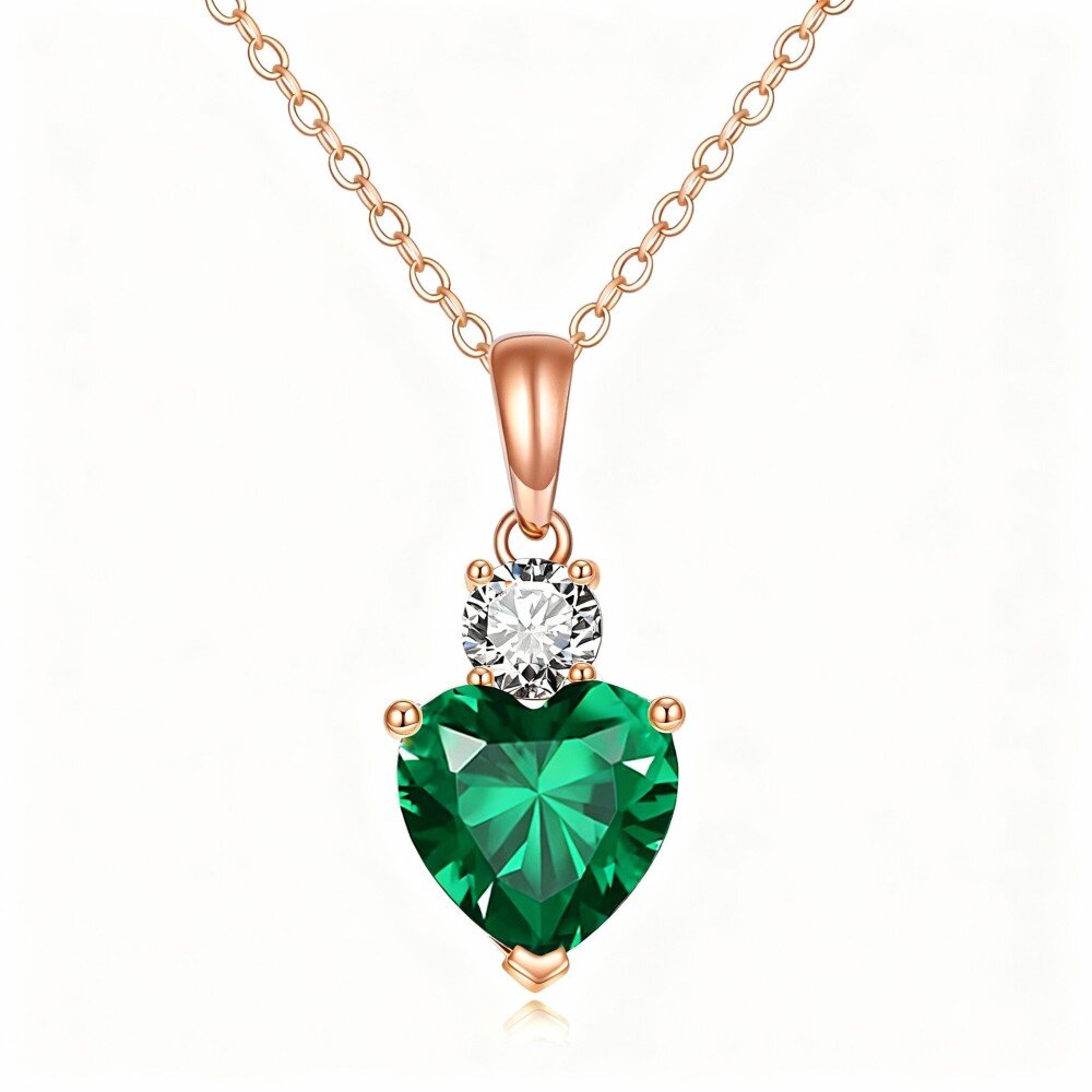 Élevez votre style avec notre collier pendentif en Or Rose 18K, mettant en avant un magnifique émeraude en fOr Roseme de cœur et des accents scintillants en zircon cubique.