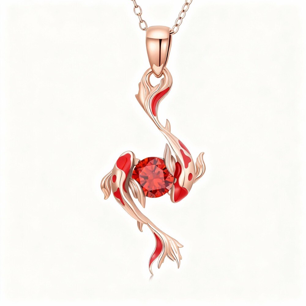 Découvrez le parfait mélange d'élégance et d'art avec notre magnifique collier pendentif poisson en Or Rose 18K orné de pierres en zircon cubique étincelantes.