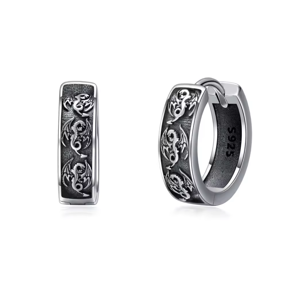 Découvrez le mélange parfait de style audacieux et d'élégance intemporelle avec nos boucles d'oreilles dinosaure en argent sterling, conçues exclusivement pour les hommes. Dotés d'une finition argentée rétro audacieuse, ces accessoires sans pierre s'ajoutent à n'importe quelle collection de bijoux.